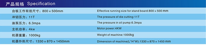 該機(jī)具有定位、微調(diào)、自動脫料等功能,工作高Xiao準(zhǔn)確;自動停機(jī),四立柱式穩(wěn)定結(jié)構(gòu),性能穩(wěn)定,操作安全。